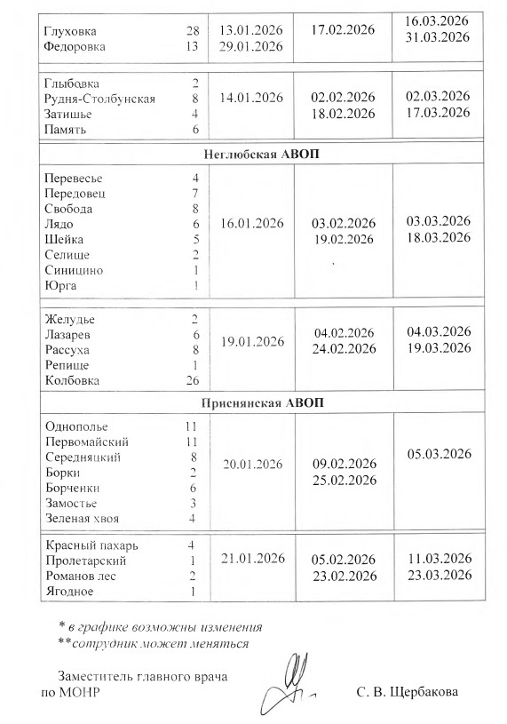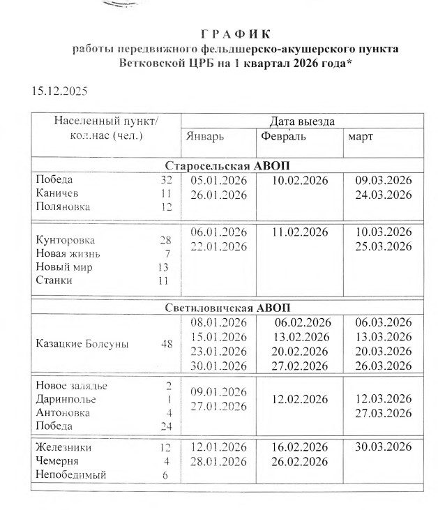 ГРАФИК РАБОТЫ передвижного ФАП на 1 квартал